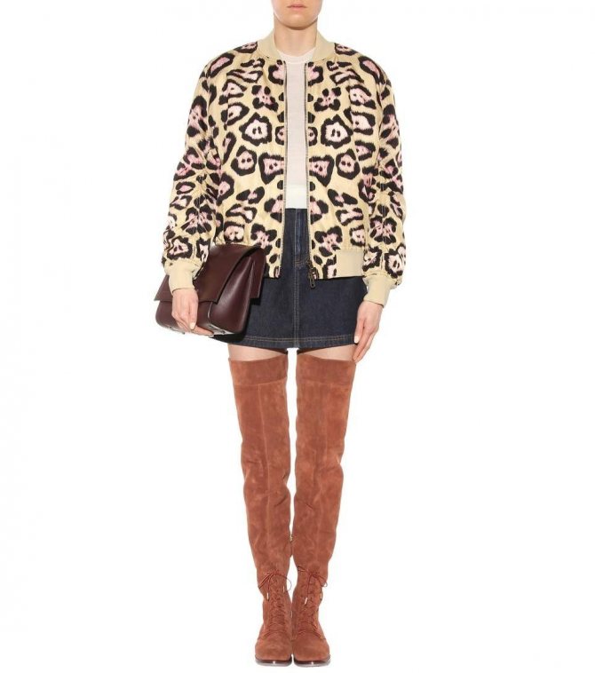 - Ботфорты. Несмотря на свою претенциозность в моделях с каблуком, сапоги с голенищем выше колена «с плоскостопием» вполне универсальная вещь гардероба. Сочетаемость с различными видами одежды очень высока и единственным ограничением является длина, которая не должна быть ниже колен. Из верхней одежды подойдут полупальто, укороченные шубки, дубленки, плащи, бушлаты, а также курточки из натуральной кожи и замши. Из одежды подойдут скинни, мини юбки, укороченные платья и даже шорты.