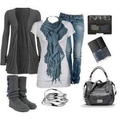 Угги отлично вписываются в образы свободного стиля. Носят их, как правило, с зауженными брюками, джинсами, джегинсами. Верх ансамбля может быть представлен футболками, свитерами, яркими туниками. А также, пуховыми куртками и жилетами.