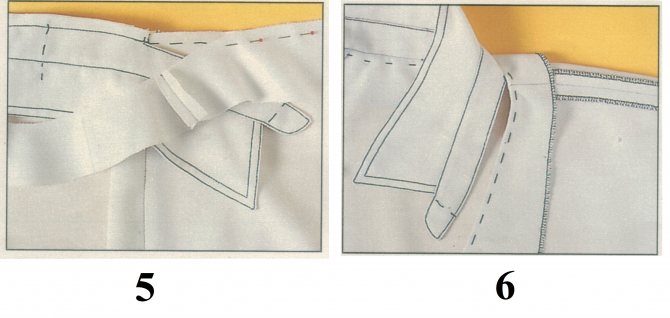 - Пояс нужно подвернуть внутрь и прострочить с лица, так чтобы строчка попала на место стачивания пояса с полочками.