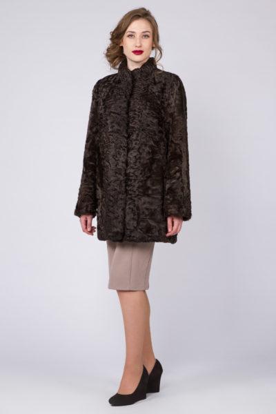 Шуба из каракуля с воротником стойкой