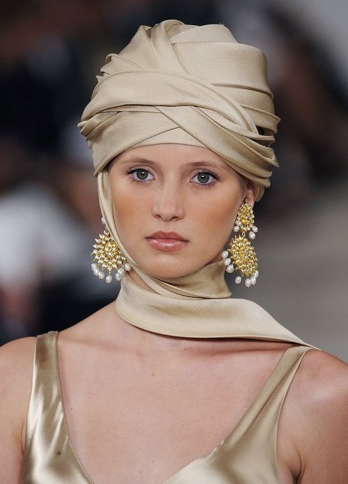 - Летняя чалма прекрасно сочетается с крупными, длинными серьгами, особенно если они сделаны в восточном стиле.