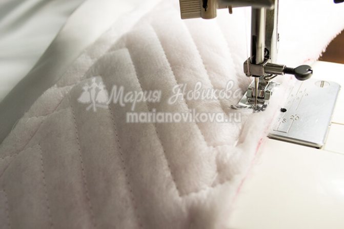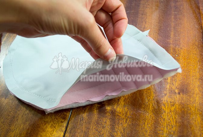 Утюжьте ткань через проутюжильник без пара, слегка надавливая утюгом на ткань. Чтобы не произошло применания утеплителя, используйте под низ ткани специальную мягкую подушечку или валик из ткани.