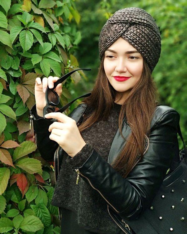 Шапку-чалму многие носят и зимой, на фото можно увидеть отличные луки, с чем носить этот фасон шапки.