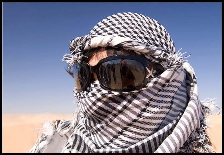 Она защищает голову от палящего солнца, ее можно завязать таким образом, чтобы защитить лицо от ветра и песка.