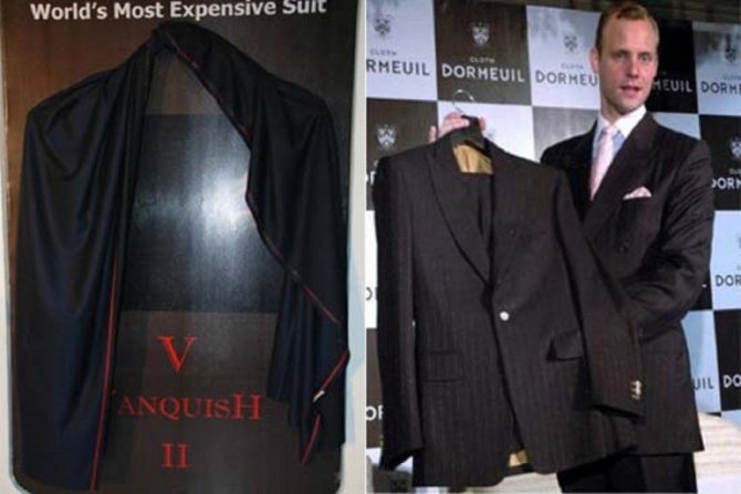 Самый дорогой костюм в мире стоит почти миллион долларов. Знаменитые дизайнеры Стюарт Хьюз и Ричард Джевелс сшили этот роскошный и экстравагантный предмет гардероба всего лишь в трех экземплярах. Создавали их на протяжении 800 часов. При шитье использовались шерсть, кашемир и шелк. Костюм украшен 480 алмазами.
