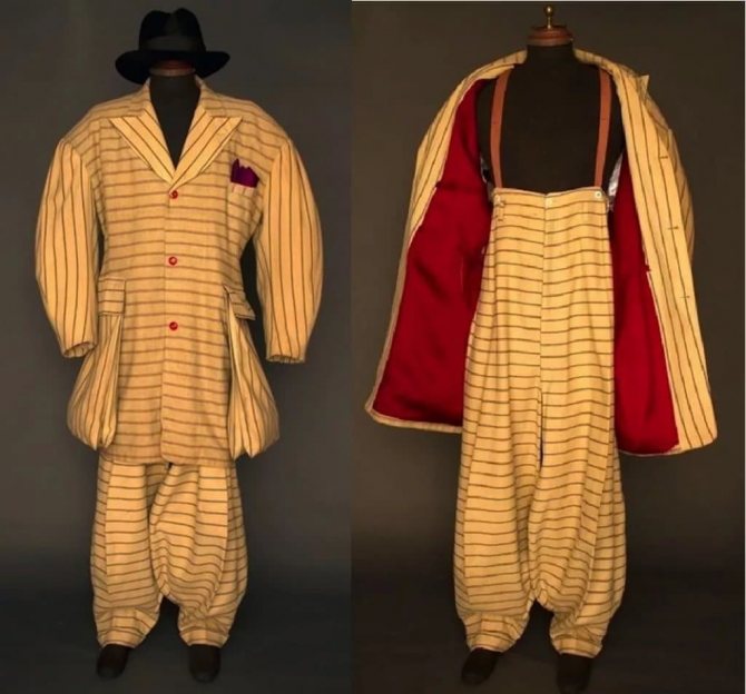 Этот необычный полосатый костюм эпохи II мировой войны был куплен в 2011 году на аукционах Augusta в Нью-Йорке за 78 тысяч долларов.
