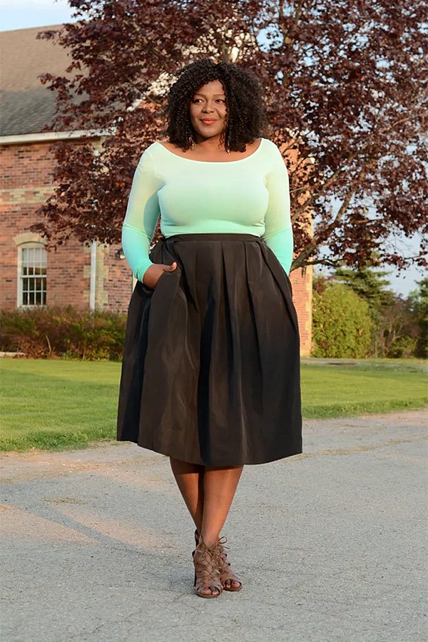 Юбка – идеальный предмет в гардеробе пышной девушки. Именно в ней ноги выглядят максимально длинными, ведь никто не видит, откуда они начинаются. Именно этот предмет гардероба способен преобразить тяжелые полные бедра и сделать фигуру более элегантной и утонченной.