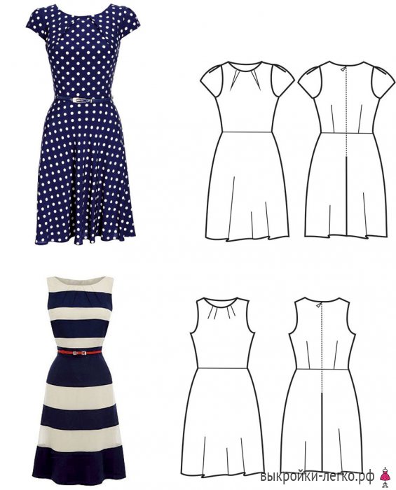 Еще интересные модели платьев силуэта трапеция и выкройки к ним: