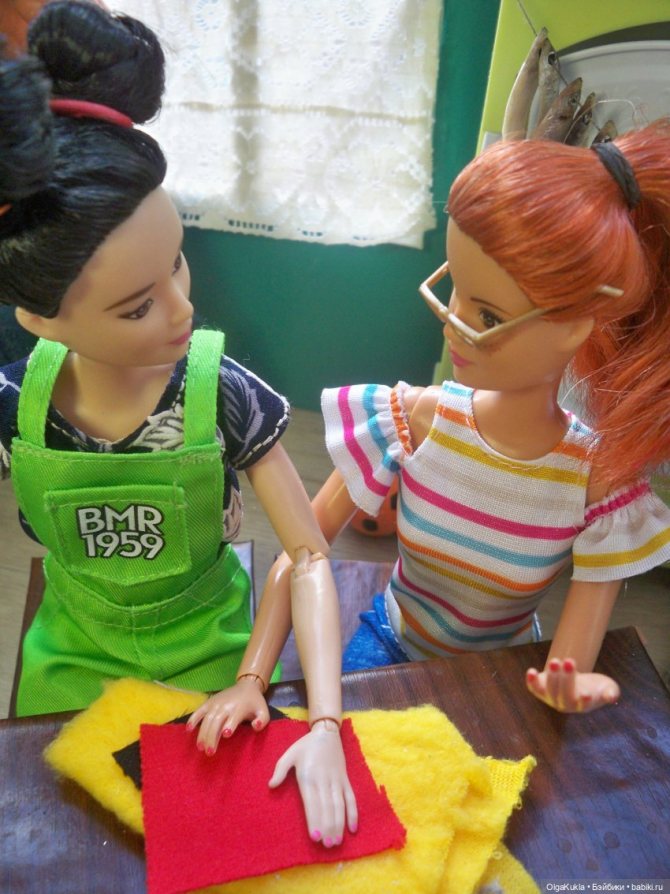Пришиваем алые щечки… Паша (коле): — Это ширина или высота? Почему шкаф получился такой маленький?