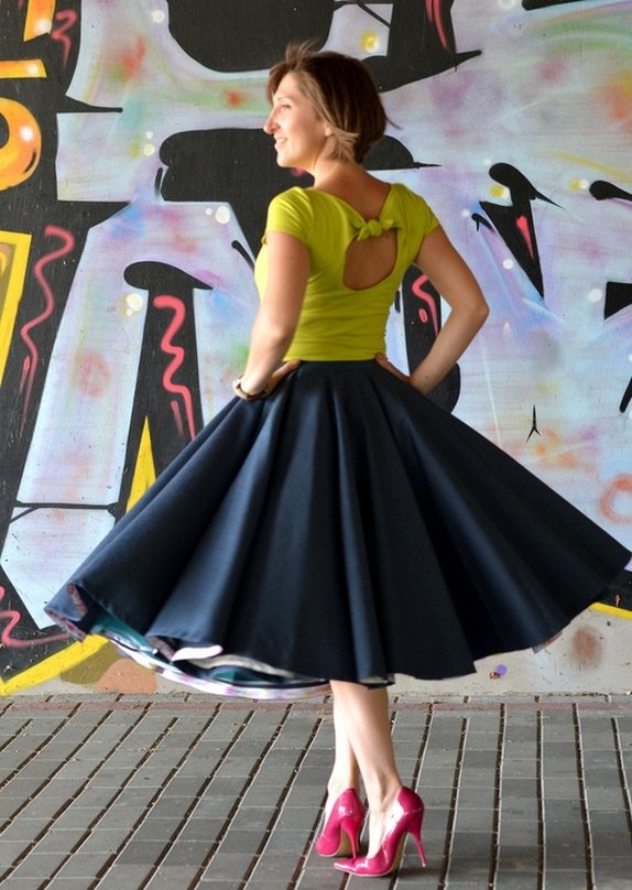Модель обрела невероятную популярность, и вопрос о том, кому подходят юбки солнце вообще не возникал. В 50 годы она была востребована дамами всех возрастов и социального статуса – от девочек-подростков до домохозяек. С тех пор этот фасон практически не выходил из моды. Иногда лишь слегка уступал в популярности трендовым мейнстримам. Однако через время возвращался на лидерские позиции.
