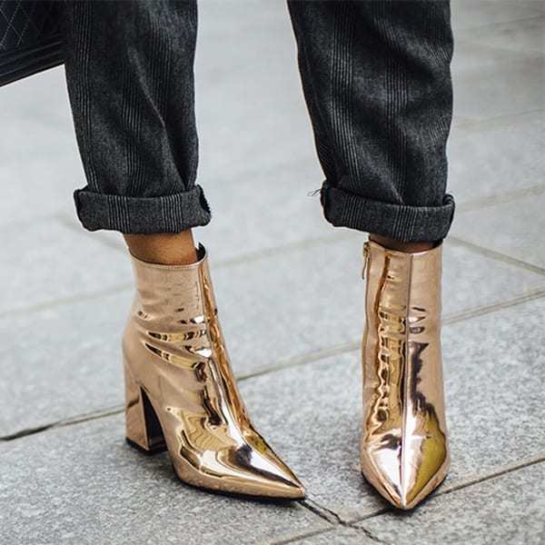 - Вас могут не оставить равнодушной трендовые ботильоны в оттенке металлик. Они отлично комбинируются с базовыми вещами и придают стильный акцент образу.