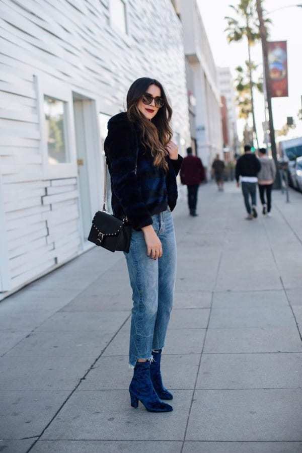 Ввиду того, что ботильоны декорированы мехом, их лучше сочетать с теплой одеждой: с джемперами, свитерами и теплыми брюками.