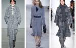 Прямой силуэт с меховым воротником-стойкой подойдет обладательницам длинной шеи. Поскольку акцент явно смещен в сторону воротника, образ не требует дополнительных ярких аксессуаров.